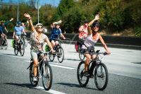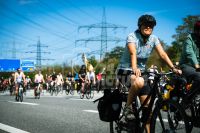 Vollsperrung der Bundesautobahn 66 am 28. August 2022 durch einen Demonstrationszug der Initiative Verkehrswende Hessen. Schätzungen der Veranstalter nahmen ca 7.000 - 10.000 Radfahrerinnen und Radfahrer teil. Die Demonstration galt als sehr umstritten, da zuvor die Autobahn GmbH gegen die Veranstalter ohne Erfolg geklagt hatte