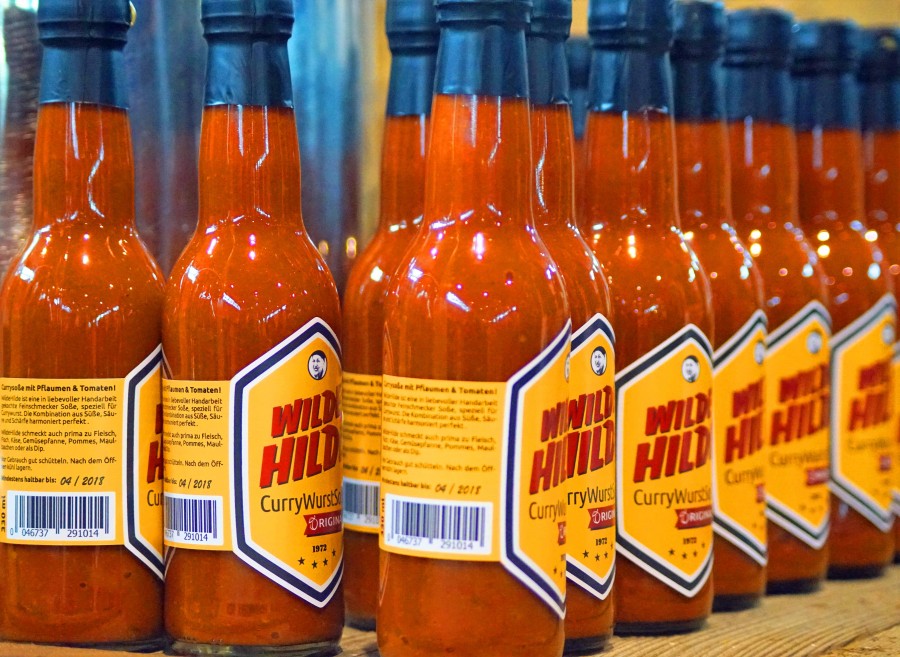 Viele neue Rezepte, Gewürze und Käsesorten standen als Versucherle bereit. Aber auch traditionelle Gerichte und vor allem gut behütete Geheimrezepte gefielen den Messebesuchern. Die "Wilde Hilde" wartete am Currystand auf Feinschmecker: Wilde Hilde ist eine in liebevoller Handarbeit gekochte Feinschmecker Curry-Würz-Soße nach dem überlieferten Rezept von Herta Huewer, verfeinert mit lecker Pflaumen. "Herta ist meine Oma. Sie ist mittlerweile über 80 Jahre alt", verriet der Standchef. Das Credo der Würze ist recht einfach: "Fruchtig frische Tomaten treffen auf sonnengereifte Pflaumen. Zuckerrüben und Hilde's curryose Würzmischung sorgen für eine anfangs fruchtig-pflaumige Süße, gefolgt von einer intensiven Würze und einer perfekt abgestimmten Schärfe im Abgang!" Der Eigenversuch bewies es: Die Schärfe kommt zuletzt. Nicht massiv, aber spürbar.