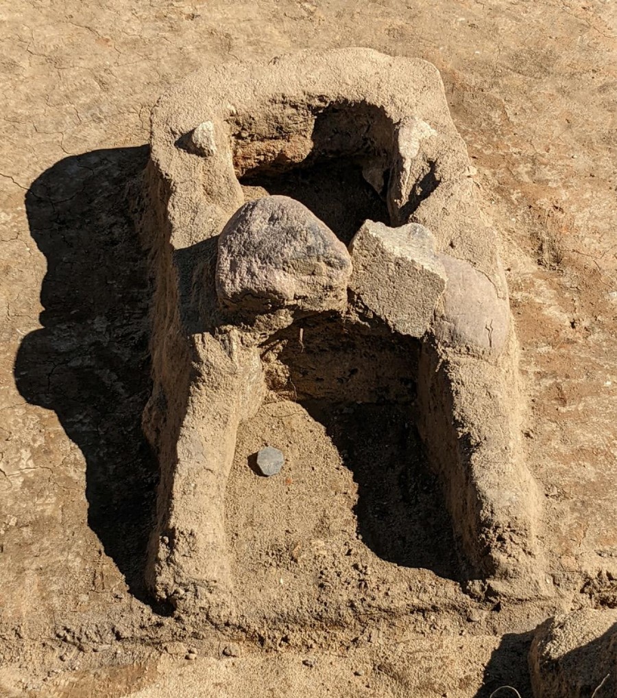 Gleich neben den Gräbern hatten wir schon bei unserer Ankunft einen Kellerraum mit einem Ofenrest betrachten können. Doch dieses Haus, in der Liste der Kampagne als Nr. 14 katalogisiert, gibt es ein paar Besonderheiten. Bisher wurden in den Überresten mittelalterlicher Häuser in Alt Wartenburg nur einmal die Überreste eines Ofens in einer höheren Ebene gefunden. Natürlich müssen die Häuser beheizt gewesen sein, aber die meisten erhaltenen Gebäudeteile sind nun mal die unter dem Brandschutt verschütteten Kellerreste. Keller wurden und werden ja meist für die kühle und dunkle Lagerung von Lebensmitteln genutzt, in der Regel ohne Heizung. Doch im Keller von Haus Nummer 14 hatte sich eine mit Steinen ausgekleidete Kammer erhalten, die Innenseite ist rußgeschwärzt, doch wozu diente sie? Vielleicht hat auch der perfekt gefertigte gefertigte und geglättete Lehmboden etwas mit diesem Ofen zu tun.
