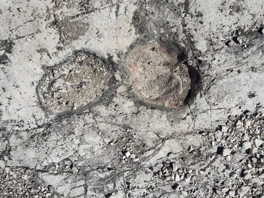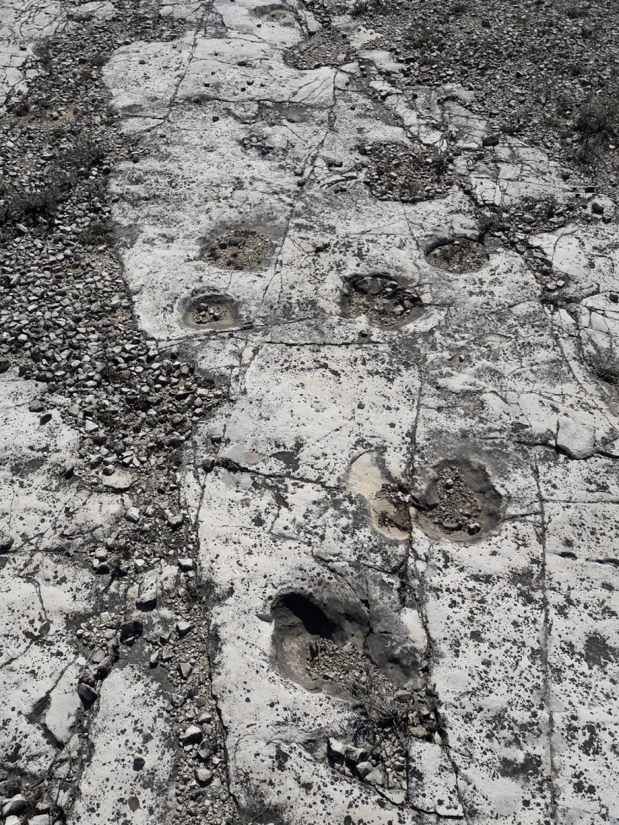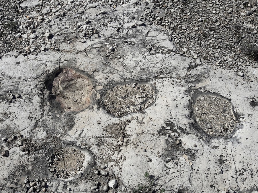 spuren Europas wurden. Die Spuren von Cava Pontrelli wurden in einer Anzahl von etwa 30.000 von mindestens 5 verschiedenen Arten von Dinosauriern im Schlamm erhalten geschätzt. Aus geostratigraphischer Sicht ist die Kreidezeit Santonian (vor 83,5 - 85,8 Millionen Jahren). Während dieser Zeit war das Wetter in Apulien sehr verschieden von dem heutigen, ein tropisches Klima, sehr heiß. Dies ermöglichte die Konservierung von sonnengetrockneten Fußabdrücken, bevor sie von anderen Schichten kalkhaltiger Sedimente bedeckt wurden. Es ist möglich anzunehmen, dass sich diese großen Reptilien auf einer karbonhaltigen, schlammigen Ebene bewegten und ihre Fußabdrücke in einigen Fällen sogar ziemlich tief zurückließen. Einige Fingerabdrücke tragen die Löcher, in denen der Schlamm am Fuß des Dinosauriers hängen geblieben ist, in anderen können Sie die Artikulation des Fußes oder die Falten der Haut sehen.