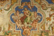 Raffellos Zimmer Sie sind zweifellos eine der Hauptattraktionen der Vatikanischen Museen. Die Räume waren die Privatgemächer von Papst Julius II., Der Raffael die Ausführung der Fresken anvertraute. Der Maler aus Urbino arbeitete dort von 1508 bis 1520, dem Todesjahr, nach dem die Arbeiten bis 1524 von seinen Schülern ausgeführt wurden. Stanza della Segnatura, die die private Bibliothek von Julius II. Beherbergte. Hier sind vier Fresken, die die vier Hauptdisziplinen des Wissens darstellen: der Sakramentenstreit (Theologie), die Schule von Athen (Philosophie), der Parnass (Poesie) und die Tugend und das Recht (Rechtswissenschaft).