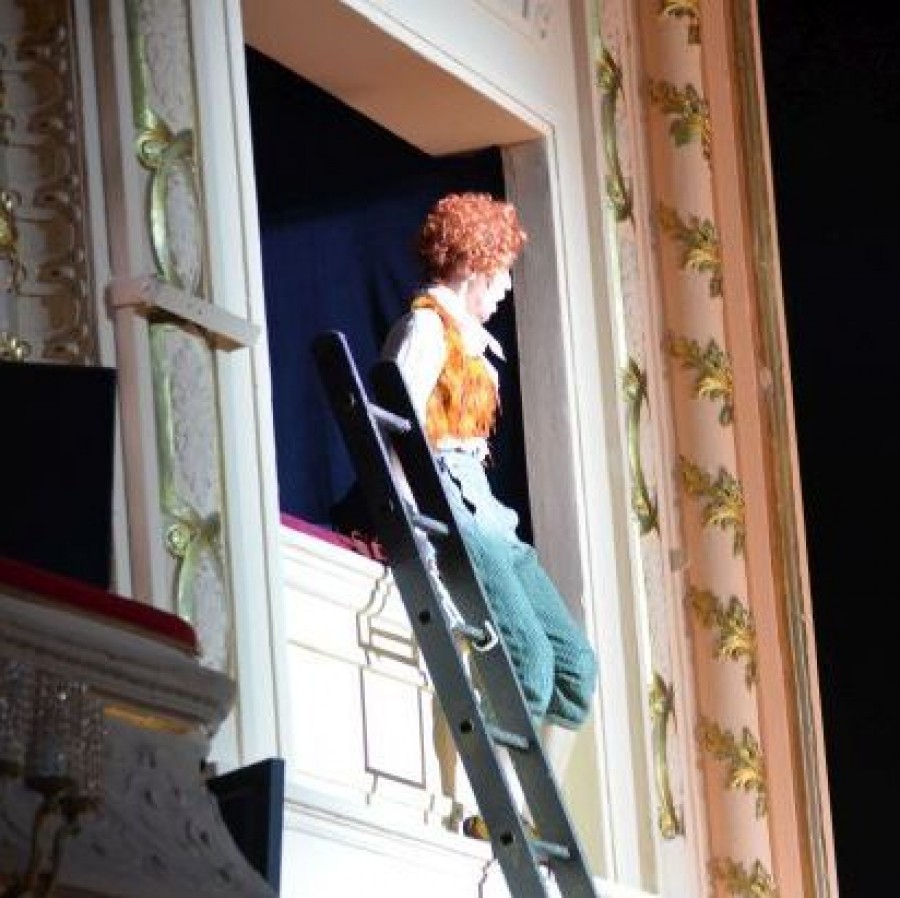 Auf der Balustrade einer Opernloge kräht ein Hahn (Andromahi Raptis) in Koloratursopran um sein Leben. Er soll im Suppentopf landen, weil er seine Gefühlsregungen - auch zu unpassenden Zeitpunkten - sofort heraus singt. Obgleich der Hahn sich total unmusikalisch fühlt, schließt er sich der verführerischen Vorstellung an, ein Stadtmusiker zu werden. „Es ist noch kein Meister vom Himmel gefallen und wir haben genug Zeit gemeinsam zu üben.“ (Esel) Die Tierwesen wandern zusammen weiter und werden auf ihrer Reise fröhlich und stark. Um Bremen zu erreichen, müssen sie im Wald übernachten. Als Dunkelheit und Kälte hereinbrechen und sich Furcht unter den Gefährten ausbreitet, inspiriert die Katze, die sich auf Nachtmusik versteht, sich eng unter eine Decke zu kuscheln und träumend einen Entwurf von der gemeinsamen Vision als erfolgreiche Stadtmusiker zu wagen.