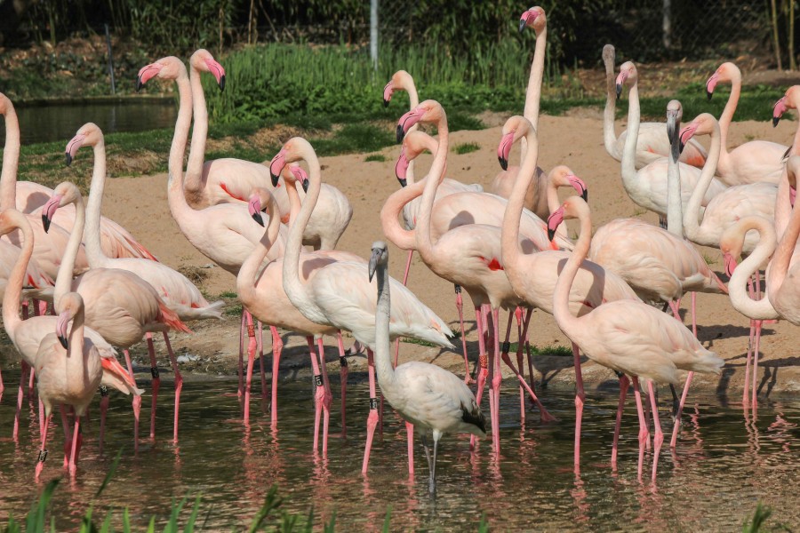 Die Flamingos hatten nach Ende der Stallpflicht Mitte März noch am längsten warten müssen, damit ihnen der Übergang vom warmen, trockenen Winterquartier an die frische Luft nicht zusetzt. Bei der Rückkehr auf ihre Freianlage strebten die rund 60 hochbeinigen Grazien nun gleich ins tiefe Wasser, um bei einem ausgiebigen Vollbad ihr rosa-weißes Gefieder zu reinigen und pflegen. Inzwischen paddeln nach der winterlichen Zwangspause in der Wilhelma auch die Pelikane wieder zwischen der Damaszenerhalle und dem Seelöwenbecken hin und her. Die Pfauen paradieren über das Gelände zu ihren Lieblingsplätzen. Die Kraniche stolzieren über ihre Wiesen. Die Gänsegeier haben jetzt freie Sicht und die Greifvögel sind in ihre Außenvolieren zurückgekehrt. Gerade rechtzeitig zu den Osterferien.