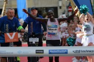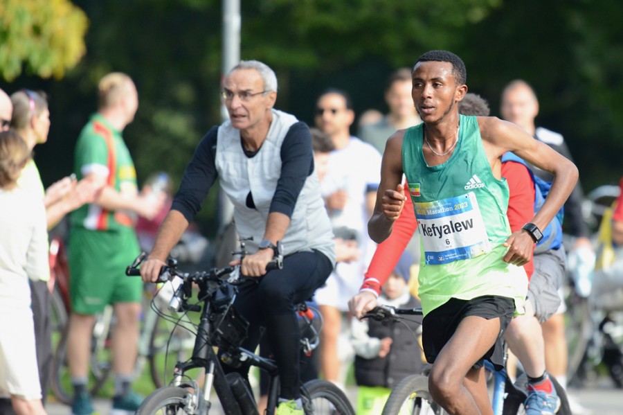 Martin Cheruiyot, Cornelius Kibiwott Chepkock und Justus Kiprotich, das kenianische Quartett, folgte ihm in harmonischem Gleichklang. Nachdem Pfeiffer seinen Dienst nach der Hälfte der Strecke (64:25 Minuten) beendete, waren die Läufer auf sich allein gestellt, während die Temperaturen um die 20 Grad lagen und Windstille herrschte. Charles Muneria, ein wahrhaft unerschrockener Athlet, konnte bereits den Höhepunkt seiner Karriere förmlich riechen. Von den Zuschauern am Straßenrand angefeuert, die sich immer zahlreicher versammelten, je näher das Ziel in Münster-City rückte, hielt er seinen beeindruckenden Laufrhythmus aufrecht. Schließlich erreichte er den Zielbereich auf dem Prinzipalmarkt, wo alljährlich der rote Teppich ausgerollt wird, und finishte inmitten des jubelnden Publikums in beeindruckenden 2:09:06 Stunden.