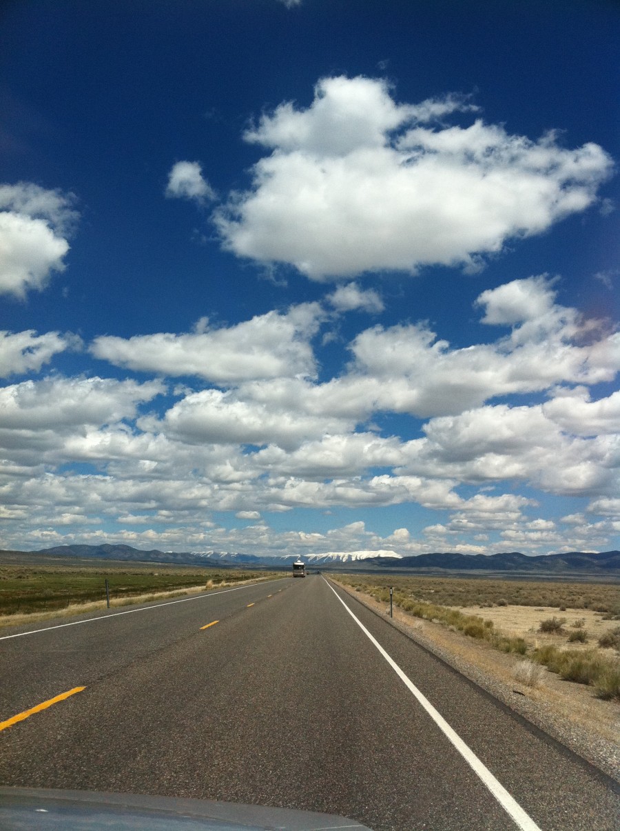 Ist man mal eine Stunde unterwegs, kommt man durch eine grüne Oase mit dem Namen Fallon. Hier hat man wirklich die letzte Tankstelle für die nächsten 300 km. Den Tank voll und die Vorräte aufgefüllt geht es nun los - das Abenteuer US50 wie der Highway hier genannt wird. Zurück auf der Straße, den Tempomat auf 65 Meilen eingestellt geht es immer gerade aus. In der Ferne sieht man die umliegenden Berge wie auf einer Postkarte. Der Tipp den wir mitbekommen haben, bleibt doch auch mal unterwegs stehen und schaut Euch mal neben dem Highway um, kann ich nur ebenfalls weitergeben.